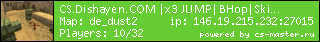 Сервер:   CS.Dishayen.COM |x3 JUMP|BHop|Skins|REV|HEAL|Server 4 Ladies